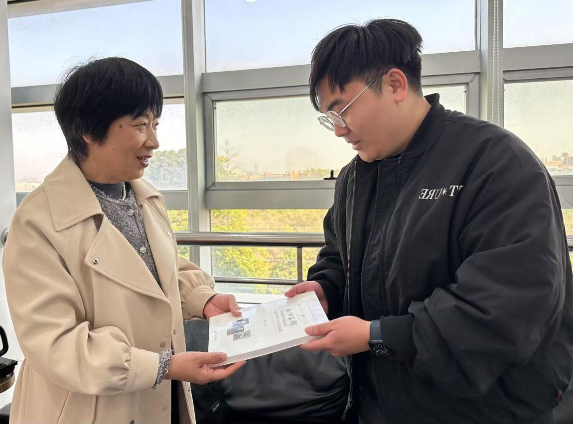 图1 朱晓红院长向“粤派名师”高级美术教师薛广超赠送科研成果