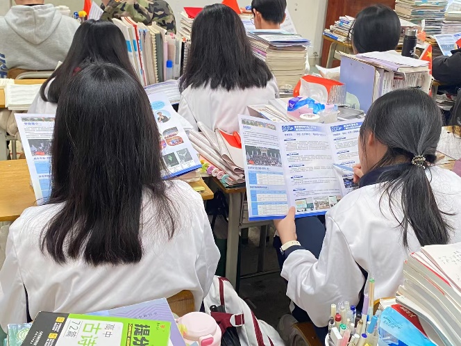 图1:返乡同学在深圳光明区高级中学做招生宣传的现场