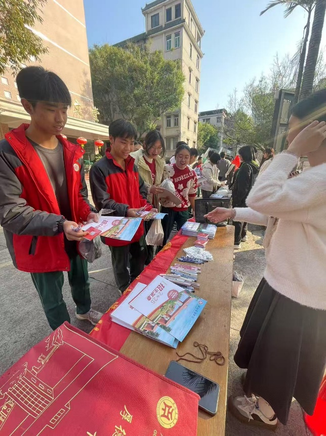 太阳集团tyc138时尚传播班学生,利用假期参加社会实践,作为志愿者积极参与华商学院招生办组织的返乡宣传工作。从2025年1月4日至2月14日,四组20多位同学,分别进入梅州中学、潮州绵德中学、深圳光明区高级中学、揭阳惠来县一中等四所中学,深入学校和班级进行宣讲,积极宣传推ok138太阳集团古天乐,派发学校宣传册和太阳集团tyc1382025招生简章。