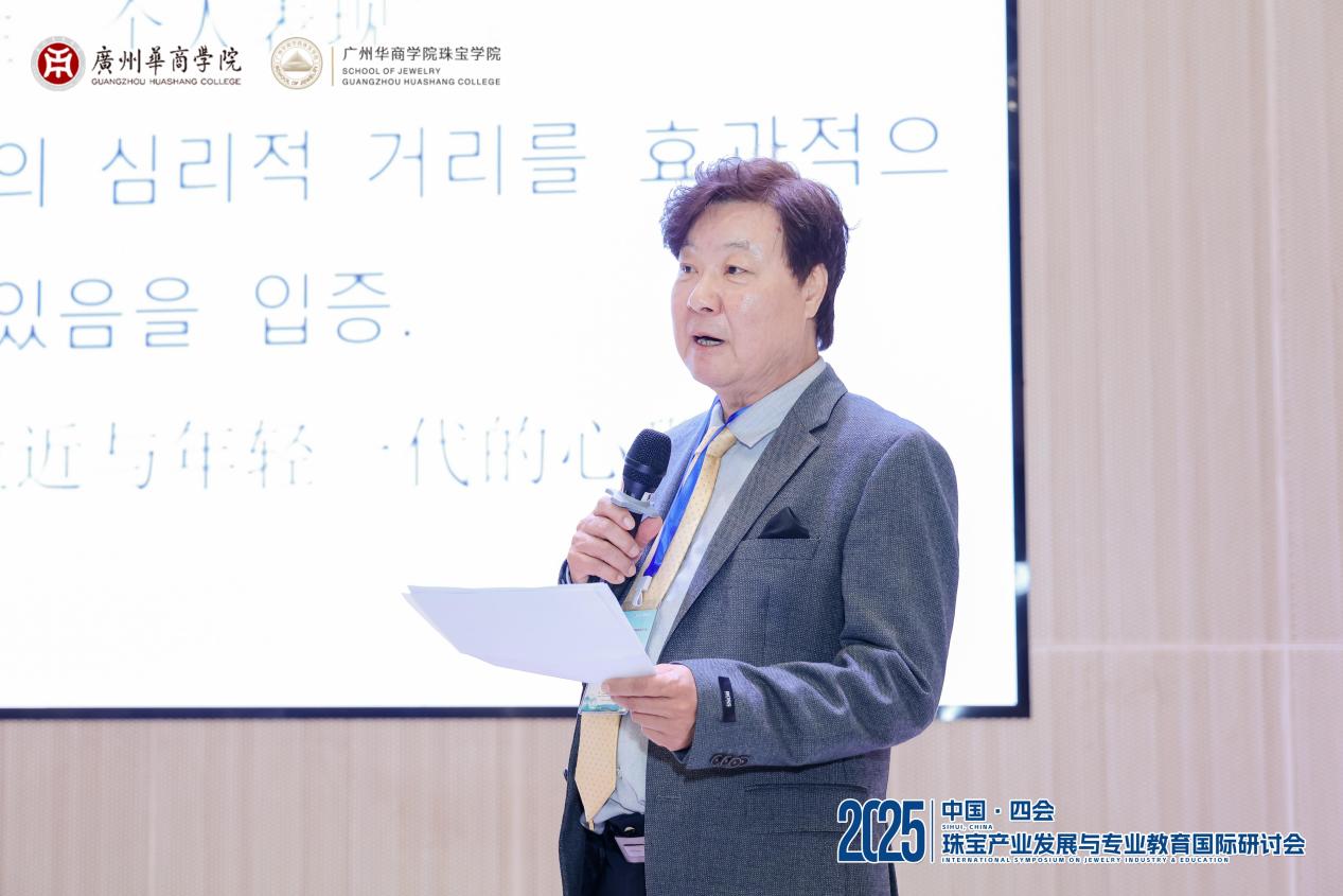 中外专家的专题演讲,为产业发展带来多维前沿洞见。韩国东义大学广告与公关系赵璟燮教授以韩国市场为例,提出珠宝营销需转向"情感化传播"——通过AR虚拟穿戴技术、偶像经济合作等方式拉近与Z世代的距离,让珠宝从"身份象征"转变为"自我表达载体"。缅甸仰光大学(原)地质系主任Day Wa Aung结合丰富的地质图片资料,系统展示了缅甸宝石矿产资源的分布特征与地质成因,详细介绍了该国从金工、玉石切割到3D建模的专业课程体系与矿山实地教学模式,强调宝石学教育在连接高校与企业中的桥梁作用。中山大学地球科学系丘志力教授从"文化四力"构建视角出发,提出翡翠是中国玉文化国际化的优质载体,在跨文化传播中应注重情感共鸣与双向互动,实现从贸易输出到文化认同的跃升。陕西科技大学设计与艺术学院院长刘宗明教授直面产业"审美代际断层"等核心痛点,提出通过设计符号学解码传统玉文化,借助AIGC等数字技术进行创新转译,让玉器遗产真正"活"在当下。郑州大学西亚斯国际学院院长贾仕秋教授直指四会玉器“有产业无品牌”的核心问题,提出以“文化转译”重塑产业价值,主张通过符号解构、数据库建设与时尚创新联盟等路径,系统提升玉器文化附加值与品牌竞争力。最后,四会市宝石协会罗荣俭会长结合产业发展历程,分析了四会翡翠产业的地缘禀赋与跃迁逻辑,为地方特色产业升级提供历史借鉴。