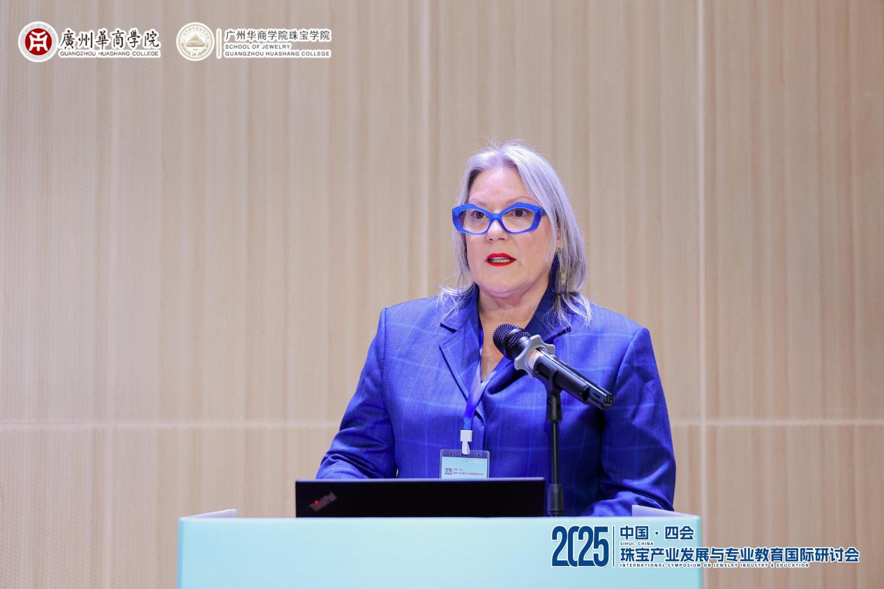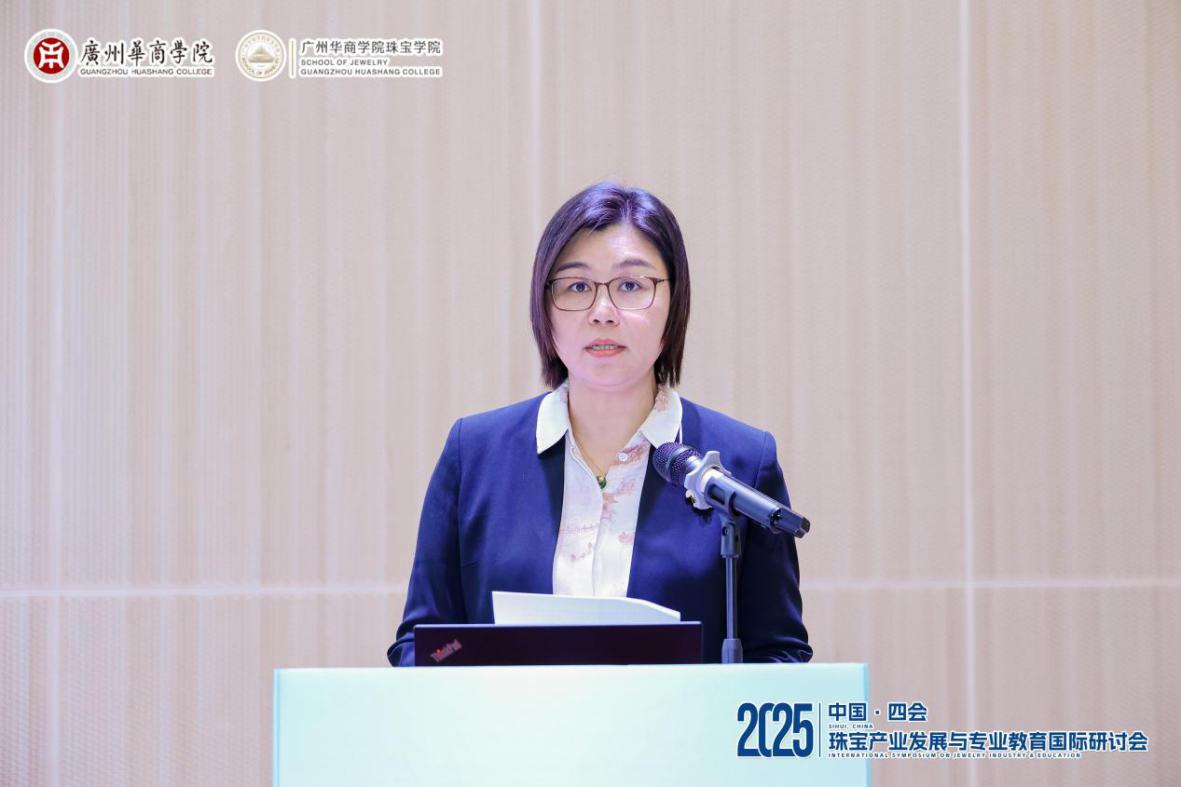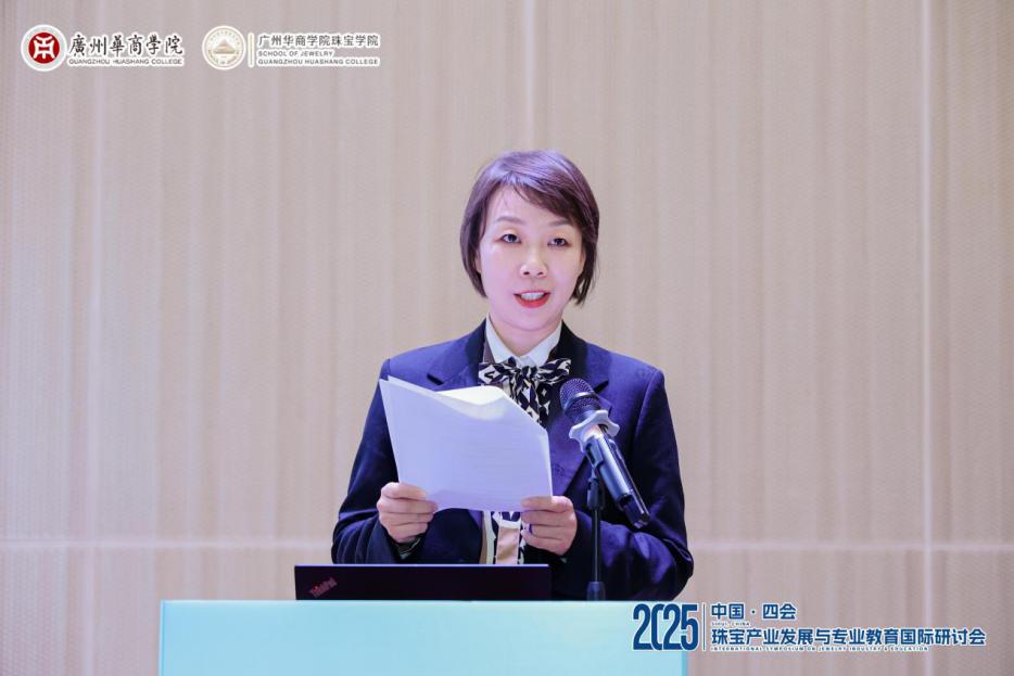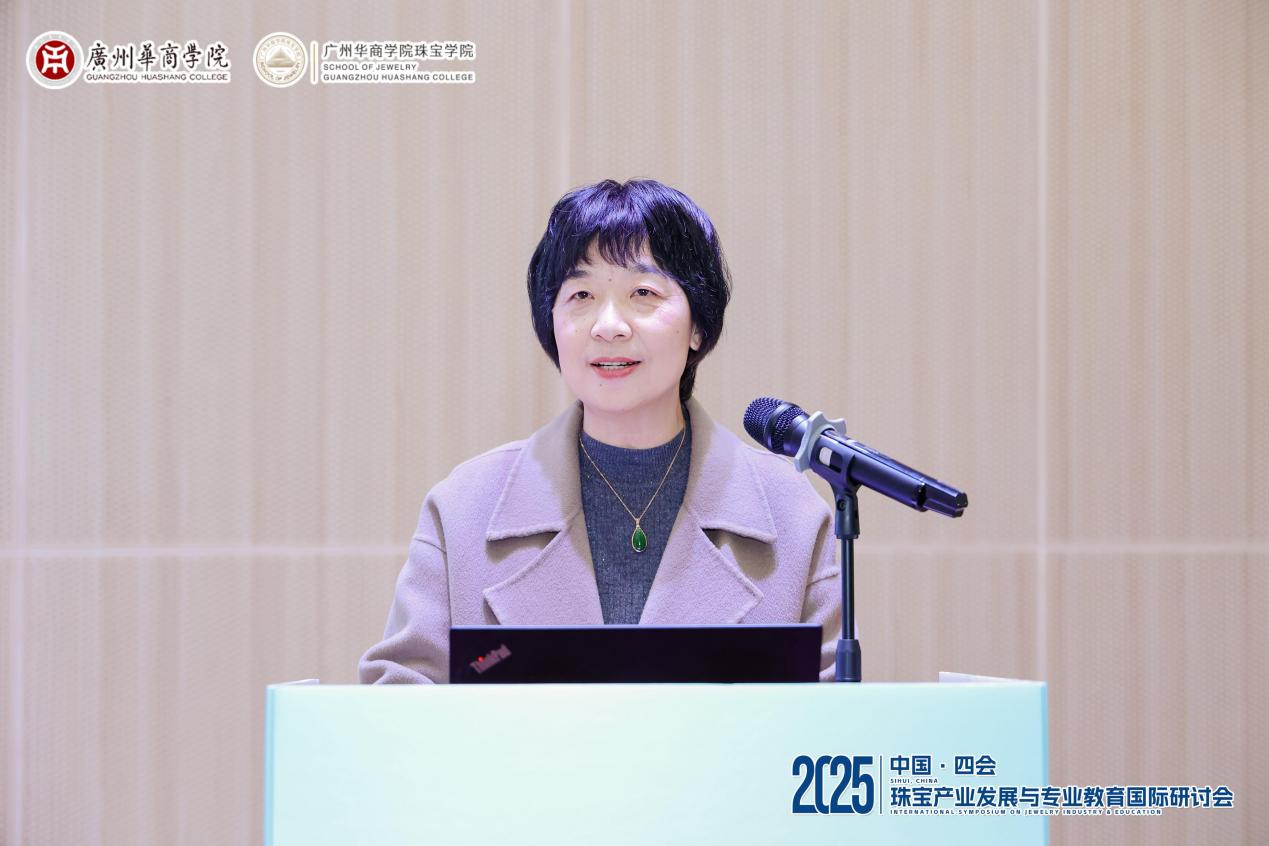 随后的学界业界专家发言中,太阳集团tyc138院长朱晓红教授首先作了题为《珠宝专业建设与发展》的专题报告,系统阐述了学院在产教融合与人才培养方面的核心路径。朱院长向全体与会人员介绍了太阳集团tyc138发展概况和未来发展的思路举措,包括引入行业大师、共建实验室与实践基地,开设理实融合与数智融合课程,积极融入地方经济和珠宝产业,为珠宝产业培养出更多的优质专业人才,清晰地表明了太阳集团tyc138将教育资源深度融入地方产业发展的实践蓝图,为深化校企合作服务地方经济做出贡献。