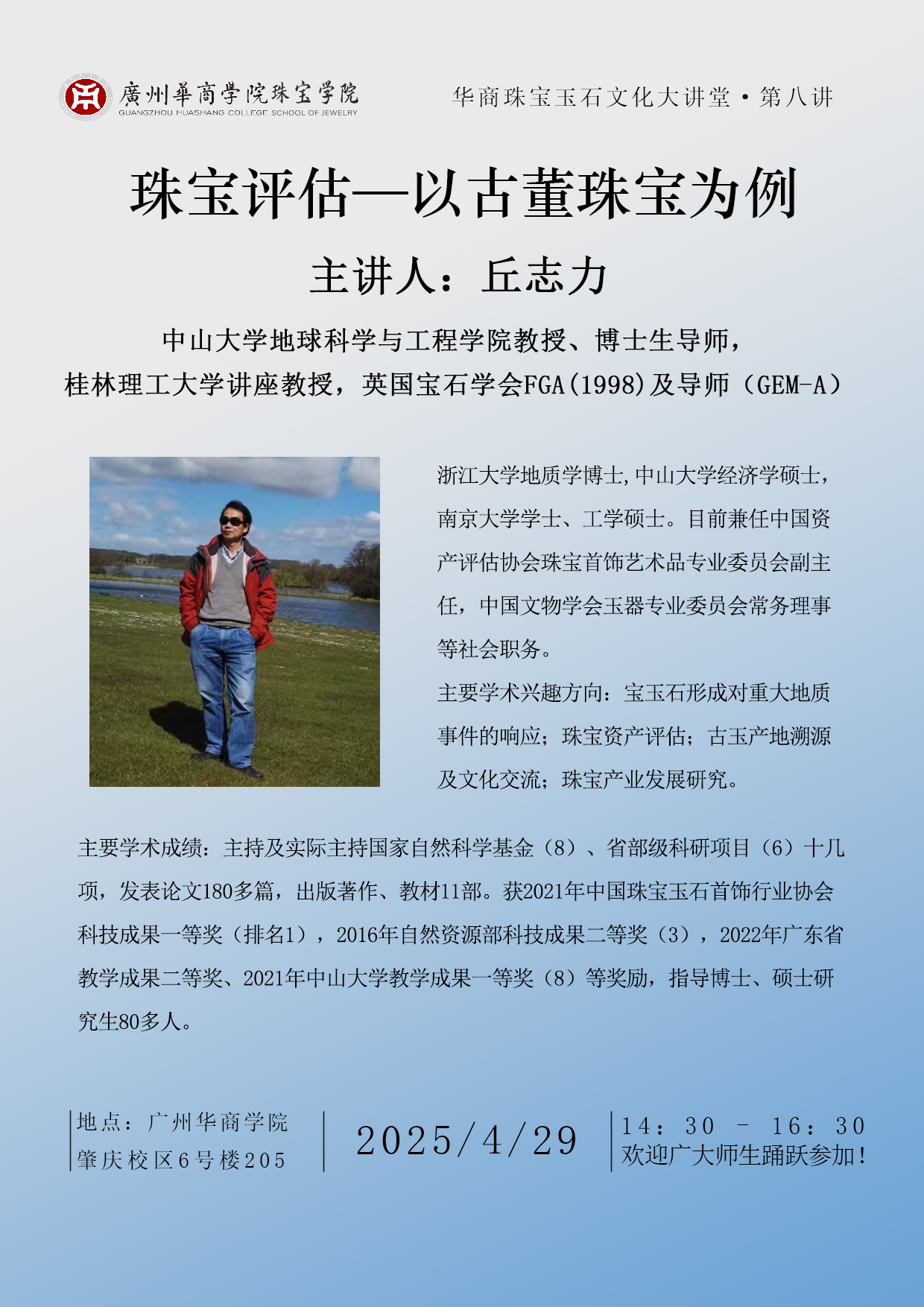 丘志力,中山大学地球科学与工程学院教授、博士生导师,桂林理工大学讲座教授,英国宝石学会FGA(1998)及导师(Gem-A);
