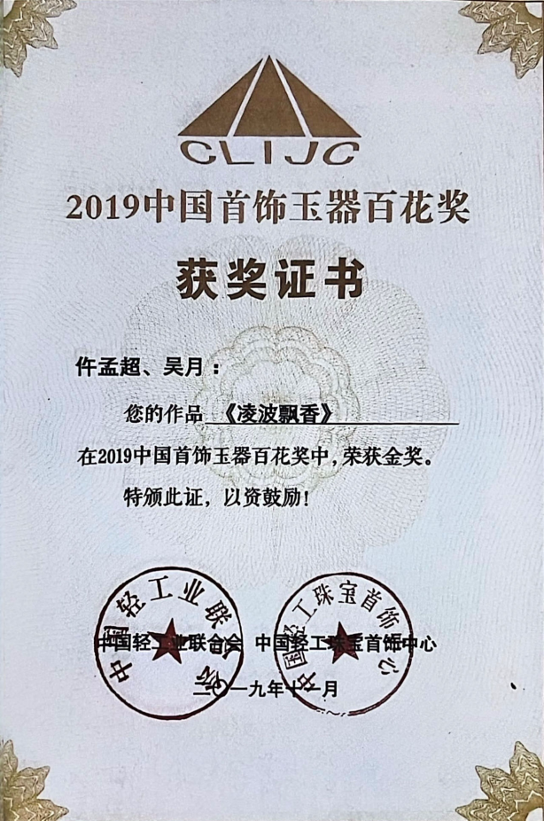 图3 仵孟超大师获中国首饰玉器百花奖金奖