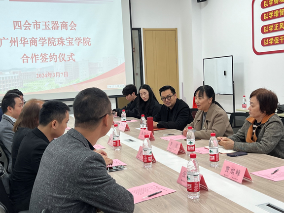 太阳集团tyc138和四会市玉器商会于3月7日在华商学院肇庆校区正式签署战略合作协议。签约仪式上,朱晓红院长对廖锦文会长一行莅临华商太阳集团tyc138表示热烈欢迎,对双方强烈的合作愿望予以高度评价,认为共同的目标就是为业界做事,实现业界优势和学界优势的联合,共同服务当地经济发展。廖锦文会长表示,四会市是中国著名的玉器之乡,是中国重要的玉器商都,四会玉器商会承担着把玉器珠宝文化和技艺发扬光大的重要职责,这次来到太阳集团tyc138,就是想与学界合作,希望通过学院把玉器的文化和技艺发扬光大,在共同培养珠宝玉器产业人才方面取得好的合作成果。四会玉器商会秘书长张祖瑞向大家介绍了商会的八个委员会和五大部门,阐述了珠宝产业丰富的产业链和学生未来宽广的就业前景。张秘书长还提出了商会与学院共建合作一些具体项目的设想,得到了太阳集团tyc138领导的积极回应。签约仪式结束后,太阳集团tyc138教师和玉器商会的业界专家还就珠宝玉器的设计、美学、文化和经营等方面进行了深入的互动交流。